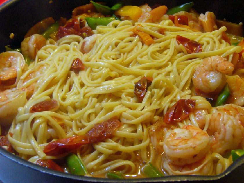 Colorful Spicy Lemon-Garlic Shrimp Linguine