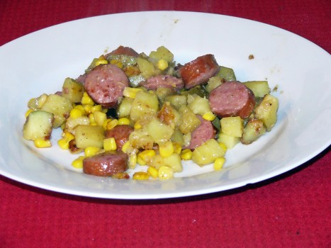 A Corny Take on Smoked Sausage with Fried Potatoes