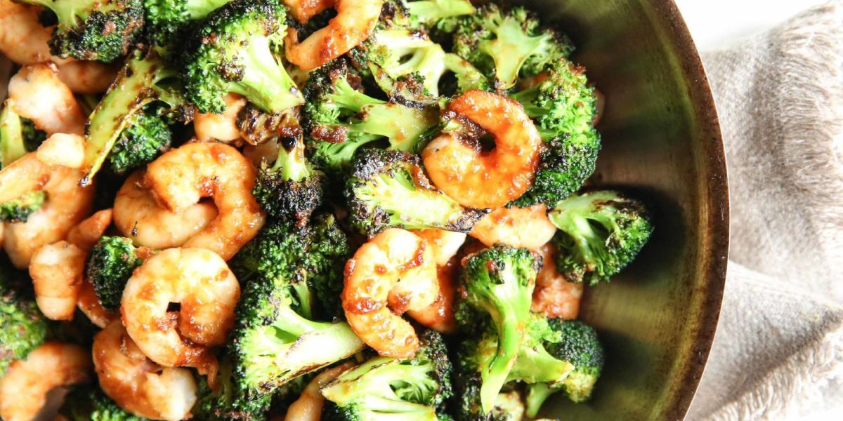 Add remaining tablespoon oil, broccoli, and a pinch more of the red pepper flakes. Stir-fry until tender, about 2 minutes. Add cooked shrimp and sauce and simmer for 5 minutes until thickened, stirring often to coat.