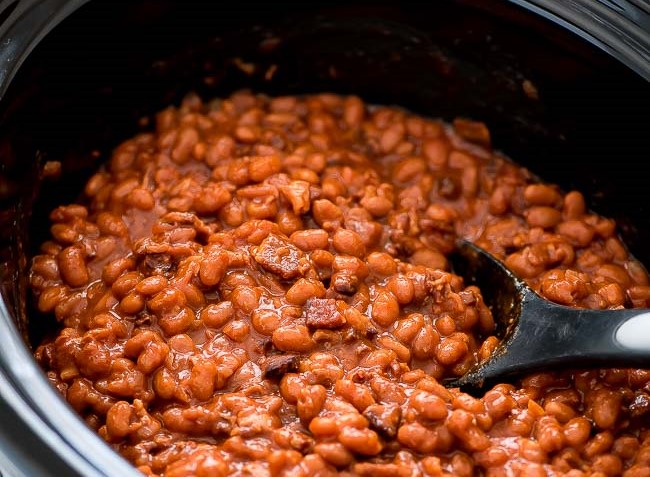 Dad always looks forward to our potlucks because he loves my beans. With everything else I had going, I just wasn’t up to my Three-Day Boston Baked Beans. Yet I still wanted to serve beans. After all, Dad loves his beans and New England is in the Super Bowl (again), baked beans would represent them at the table. These beans are packed with all that slow baked goodness we’ve come to expect from Boston’s Beans, without all the work.
