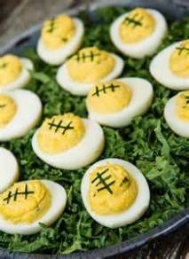 I’m the Deviled Egg Fan. I guess it’s a throwback from my childhood. If you are having a casual party, you have got to include Deviled Eggs. A formal affair? If it’s a formal cocktail party, deviled eggs topped with caviar is fine, otherwise leave the eggs at home. The best thing about Deviled Eggs is that you can garnish them to suit the theme. Football eggs anyone?
