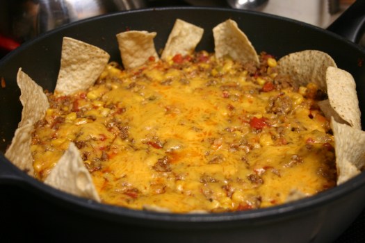 Beefy Spanish Skillet Nachos