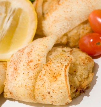 Previous Image Next Image stuffed fillet of sole baked sole fish stuffed with real crabmeat focus on front fillet with soft focus fade