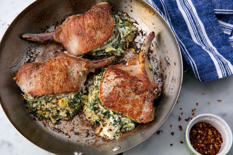 Wow, that’s not exactly a ringing endorsement for this fabulous dish, is it? What can I say except give it a try. I love these pork chops with a beautiful Rice Pilaf or simple Risotto, and an unadorned salad. I like to let this stuffed pork chops shine.