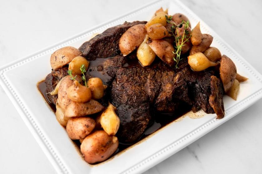 Balsamic Pot Roast with Pearl Onions and Red Potatoes