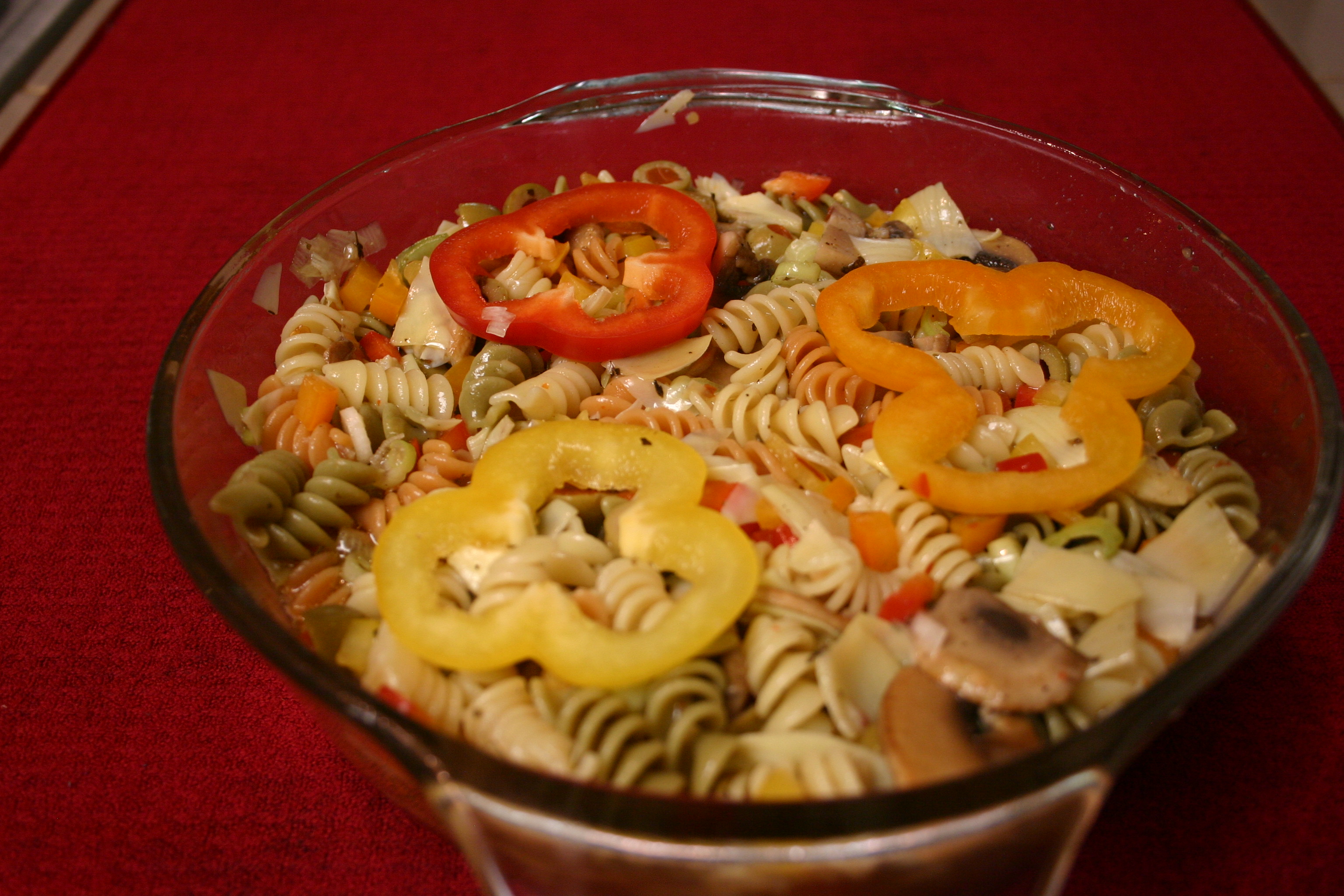 Marinated Mushrooms and Colorful Pasta Salad
