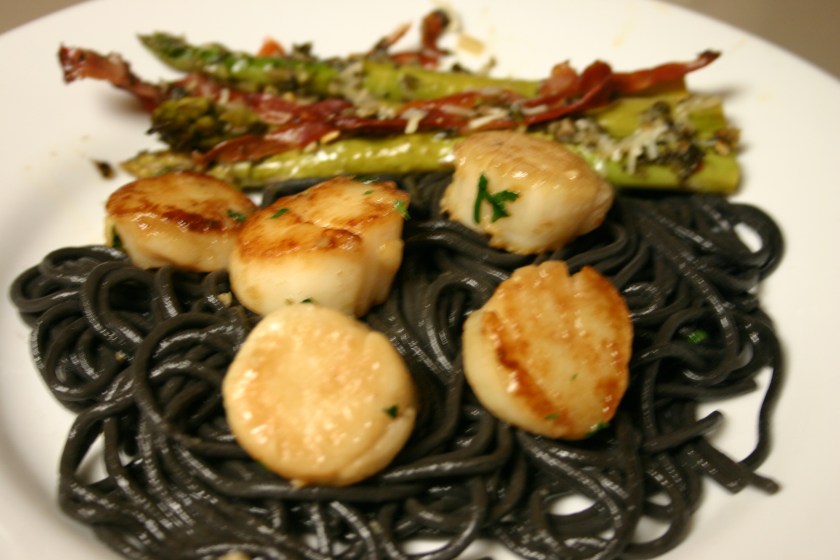 Seared Scallops over Squid Ink Spaghetti (11)
