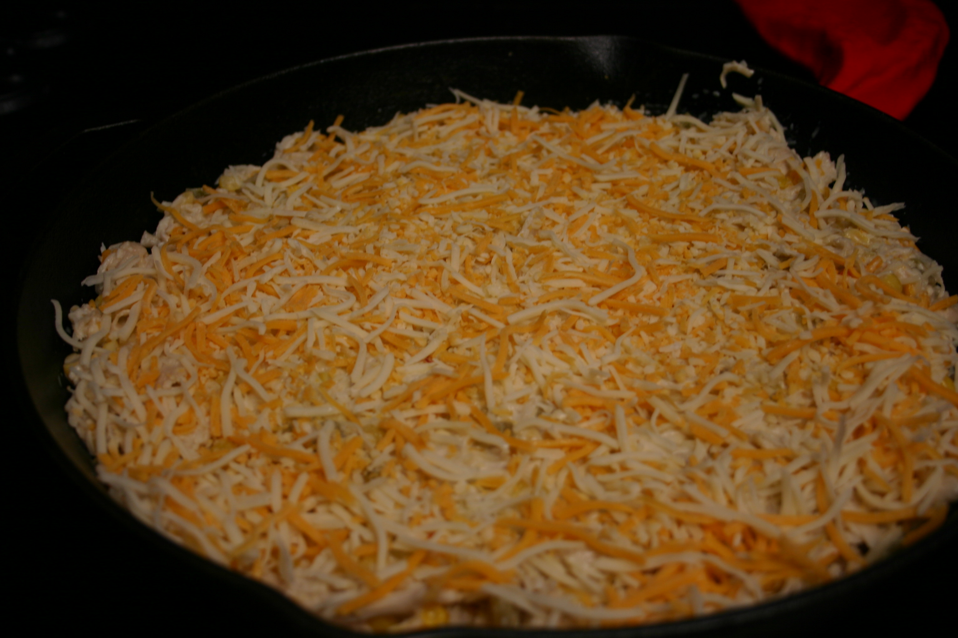 Transfer mixture to skillet, and top with remaining 1/2 cup Mexican cheese blend.