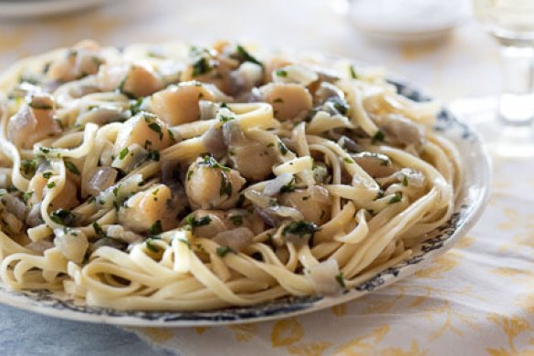 (4) Bay Scallop Linguine with White Wine and Parsley