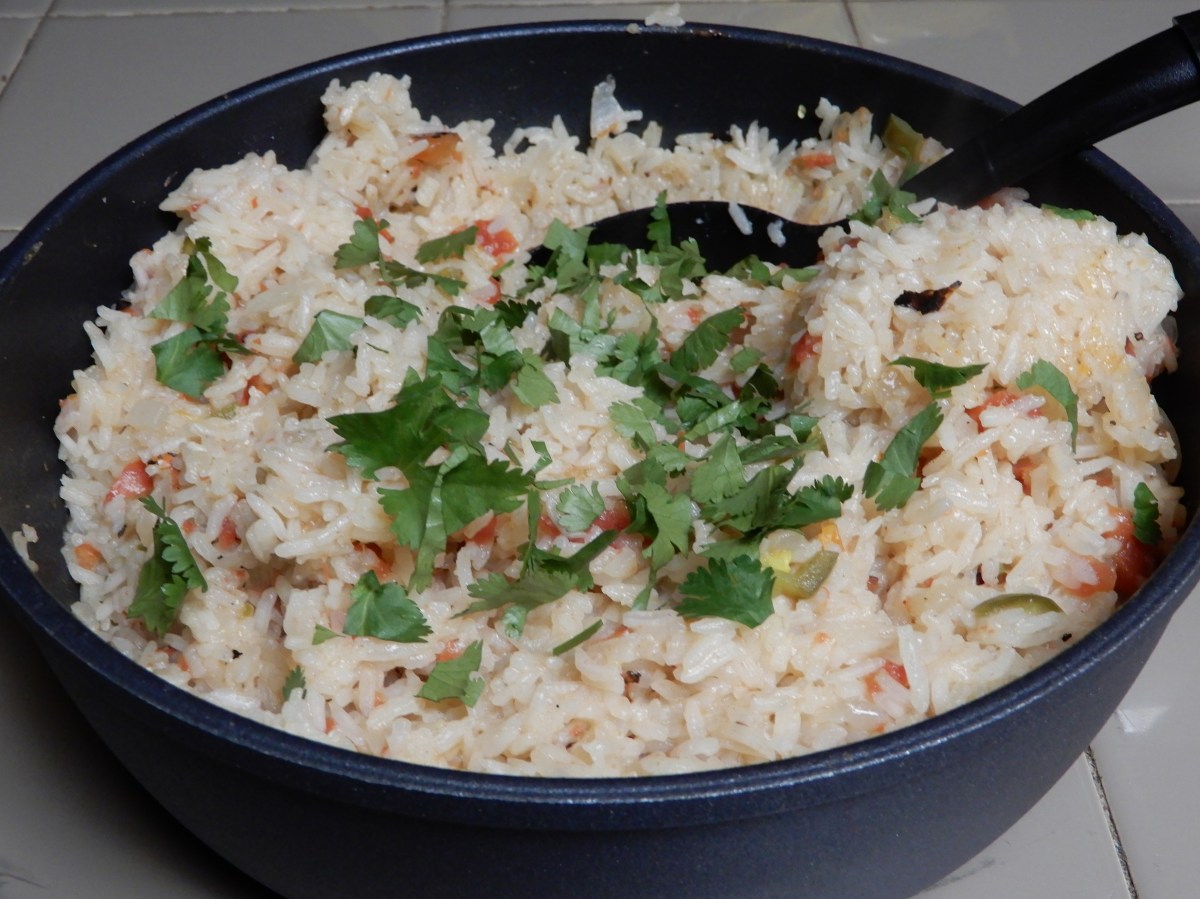 This rice was super easy to make. The prep work in minimal, and while the rice simmers you can be doing other things, like cooking up some tacos or getting really crazy and making French Bread Tacos. Whatever you might be serving, this is a nice change of pace from the usual Spanish or Mexican Rice Dishes. So gather your ingredients, and let’s get to cooking.