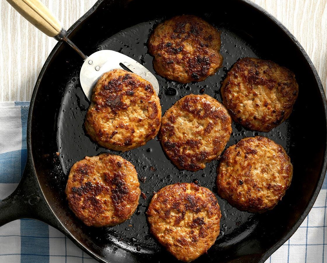 Divide the sausage mixture into 12 equal portions, then roll each into a ball. Flatten into patties about 1/2-inch thick.