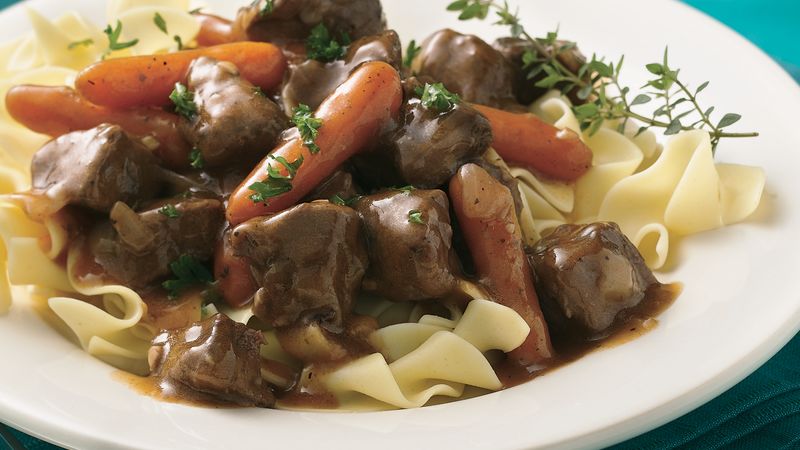 Cover; bake about 1 hour in the heated oven or until beef and carrots are tender when pierced with fork. Remove from oven; keep covered until ready to serve.