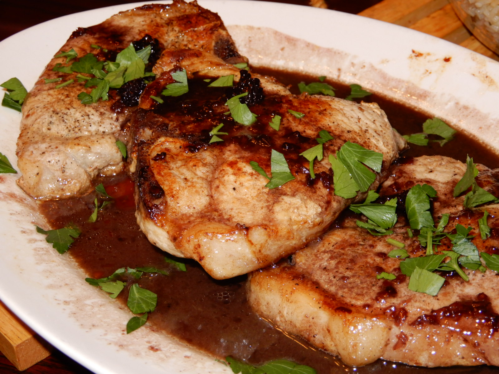 Pork Chops in a Buttery Blackberry Wine Reduction