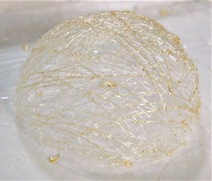 In a heavy-bottom pan over medium-high heat, heat sugar to 300 degrees. Let it melt and turn an amber-gold color. Using a small metal spoon, string the hot sugar over the back of a lightly oiled metal ladle. Trim the sugar around the edge of the ladle. Carefully slide the cage from the ladle. It is extremely fragile, so it might take some practice. Store at room temperature until ready to garnish.