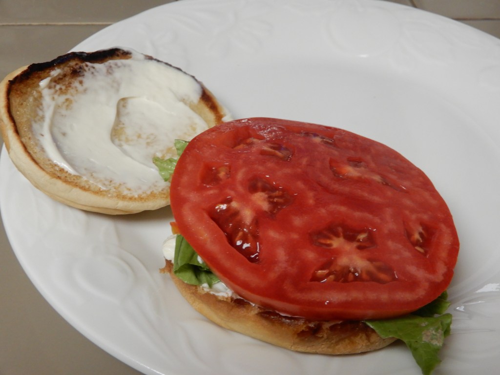 Heat oven to 250 degrees. Lightly butter hamburger buns, toast on a griddle. Spread mayonnaise over each bun bottom and top. Place buns together, place on a baking sheet and keep warm in the oven.
