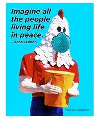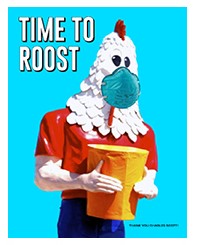 Did you know that when this whole pandemic gotta get the word out to stay safe thing first hit California, fans of Chicken Boy were trying to come up with a way to get the iconic 22-foot tall statue to wear a mask. Turns out, there really wasn’t any safe, practical way to make that happen, so they created a virtual Chicken Boy Message Campaign.