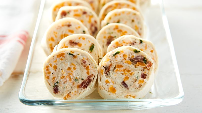 Working with one tortilla roll at a time, remove the plastic wrap. Cut roll into 1/2-inch slices, arrange on a platter. Repeat with remaining rolls. Cover and chill until ready to serve.