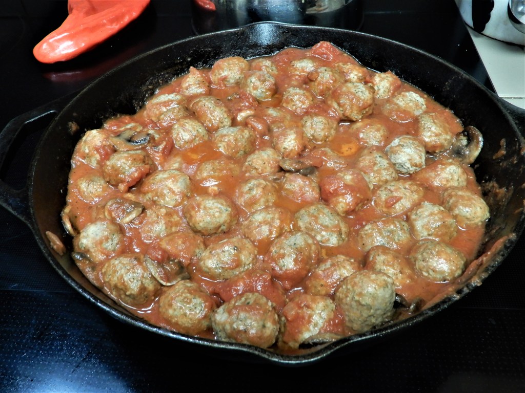 Note: My guys loved the meatballs but thought the open-face sandwich was “weak” so they took Sub Sandwich Rolls and stuffed them with the skillet meatballs. They were happy, I was happy. Good stuff no matter how you eat it.