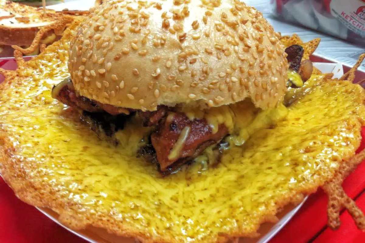 When it comes to eating a burger with a cheese skirt that is huge, you’ve got two options. The first is to trim the cheese, eat it on its own like a fried-cheese treat, the second is to fold that skirt around the burger so everything fits inside the bun. Totally up to you. I tend to have a treat with my burger. Doesn’t matter how you dig in, so long as you savor every delicious bite.