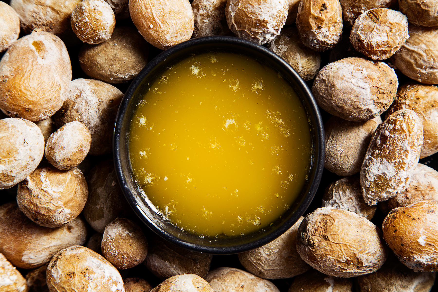 Melt butter in a dipping bowl. Place bowl in the center of a platter, surrounded with Salt Potatoes.