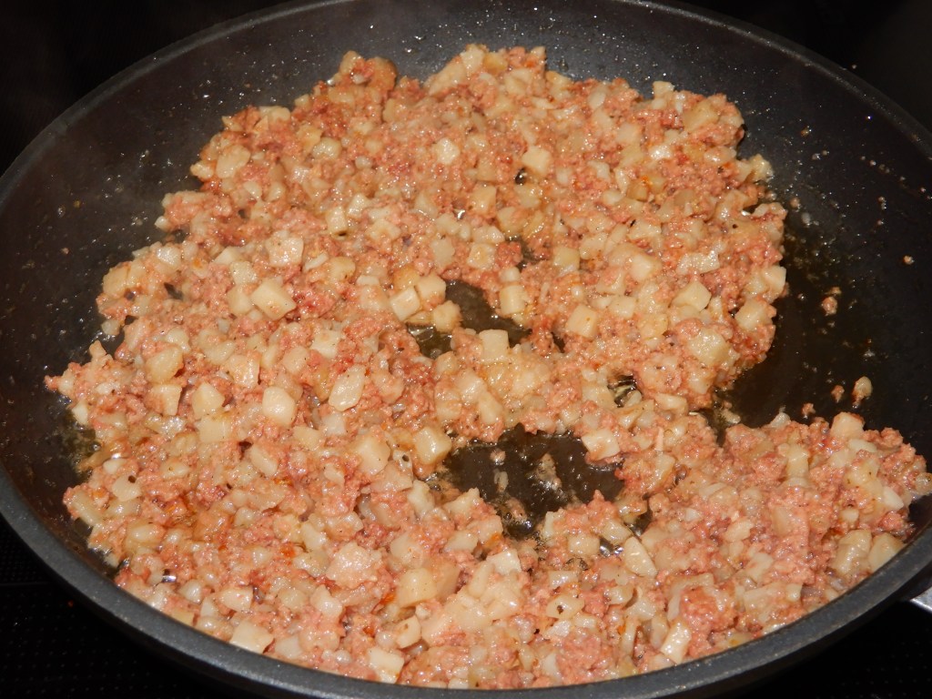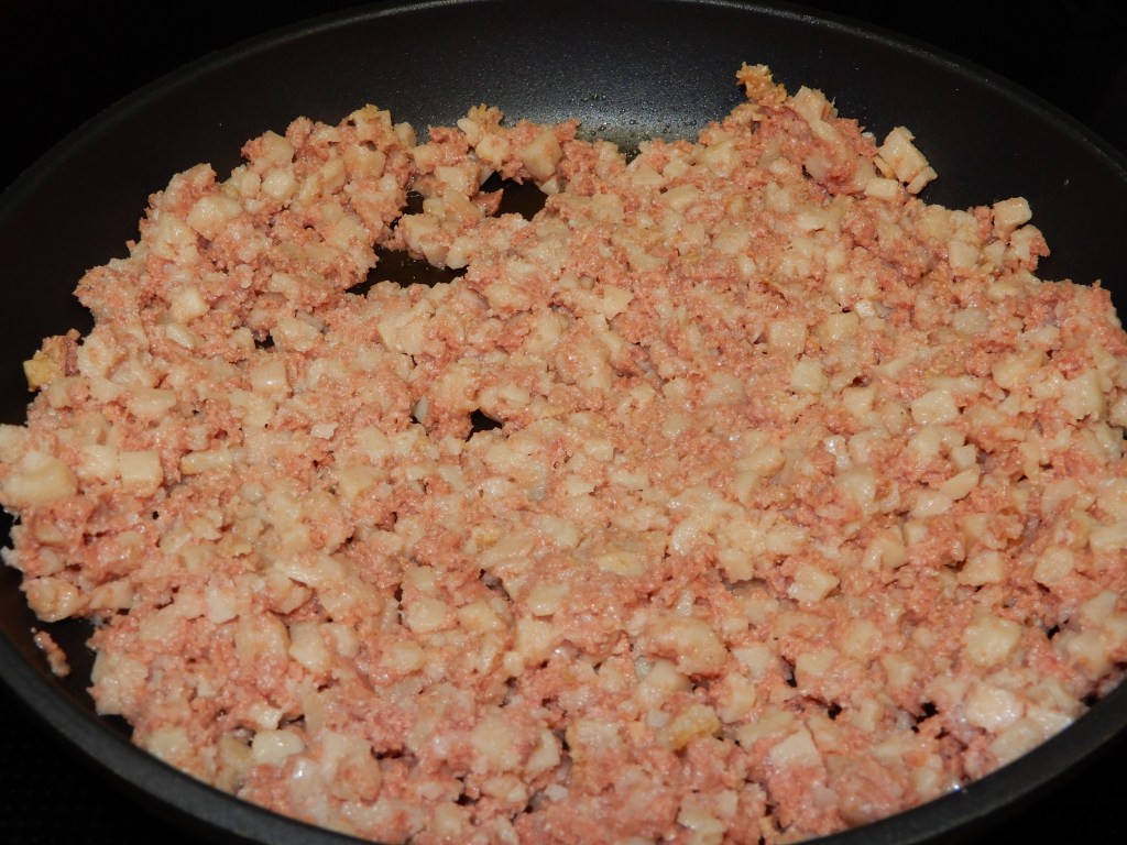 However, the hash straight from the can lacks flavors developed in scratch Corned Beef Hash. This can be overcome one of two ways. The first is to used canned Corned Beef – the meat only, not the canned hash. Shred the canned meat, then take it from there using your favorite hash recipe for potatoes, onions and spices. While not as time consuming as hash from scratch, it’s not as quick as heating up the hash in a can. That just leaves one other option. Inject the flavors of scratch cooking into the canned hash with onions and spices. It takes nearly no time and yet elevates the whole dining experience.