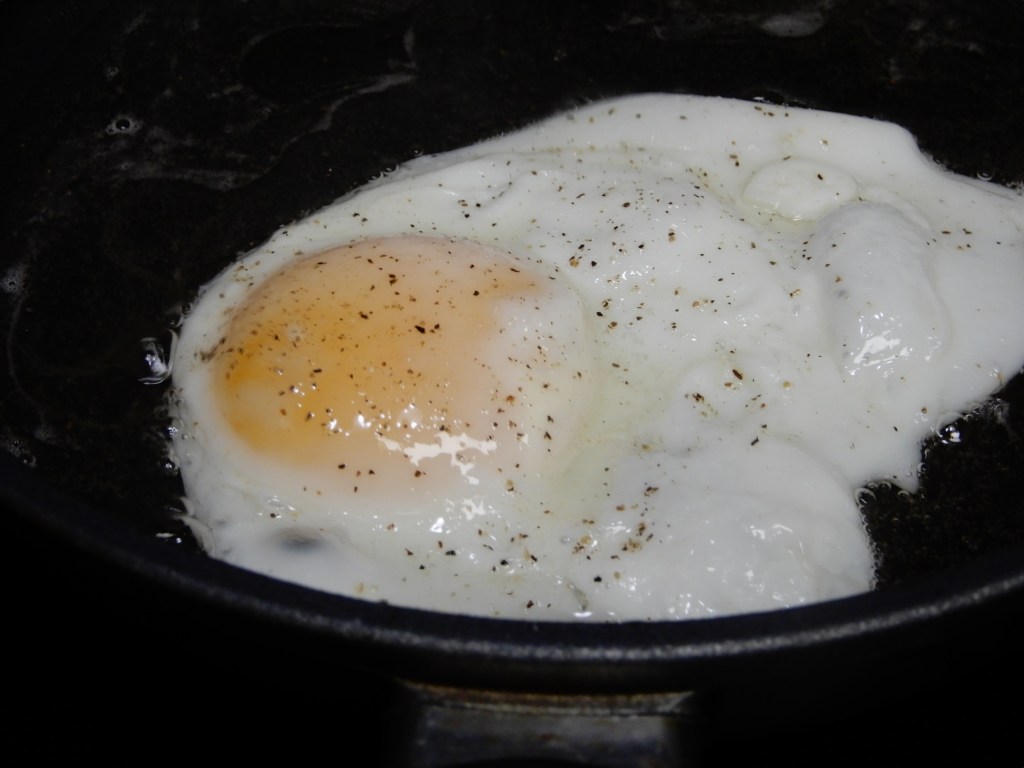 Crack 1 egg at a time into a small bowl, gently place in the skillet with 2 tablespoons bacon drippings. Continue to cook over low heat until whites have set. Remove from heat, baste with drippings just until yolks have a white film. Season eggs with salt and pepper to taste.