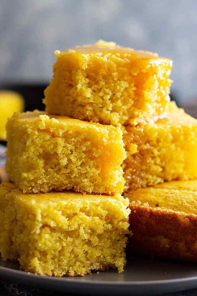 Cool on a wire rack for 5 minutes. Slice into squares, arrange on a serving platter and serve warm with sweet butter.