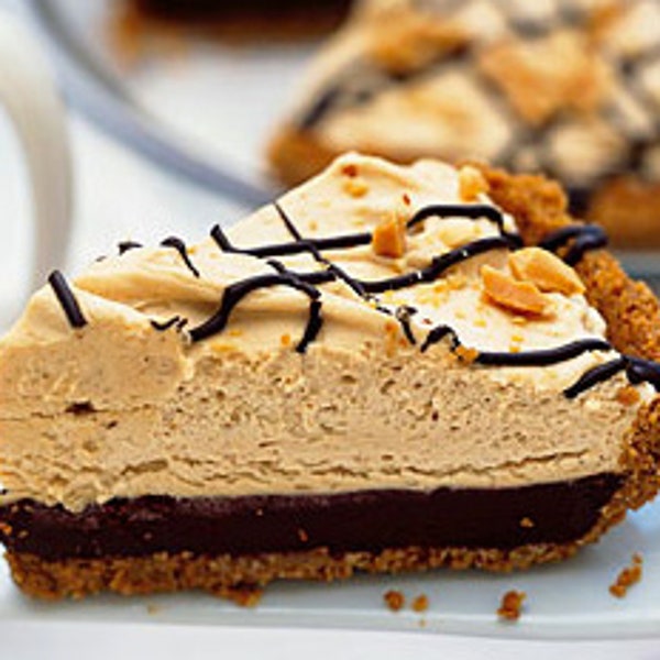 When ready to serve, drizzle pie with chocolate syrup as desired. Sprinkle some peanuts around the edge of the pie, slice and serve.
