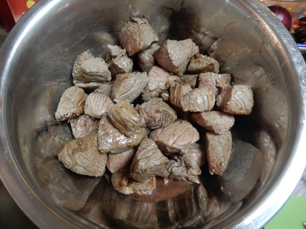 Add vegetable oil to the Instant Pot insert. Select SAUTE; adjust to CUSTOM LEVEL 3, set time for 15 minutes. (You will not need all that time, by setting time for more than necessary, the pot will not shut off in the middle of cooking). Once Instant Pot has reached temperature, add beef in 2 batches; cook 3 minutes on first side until browned. Turn; cook 3 minutes on second side until browned. Remove first batch of meat, repeat with second batch. Once all the meat is browned, set aside. Select CANCEL on the Instant Pot to turn off heat. Pour a little of the stock into the insert, deglaze the bottom of the pot, scraping up the little browned bits. Return meat to the pot.