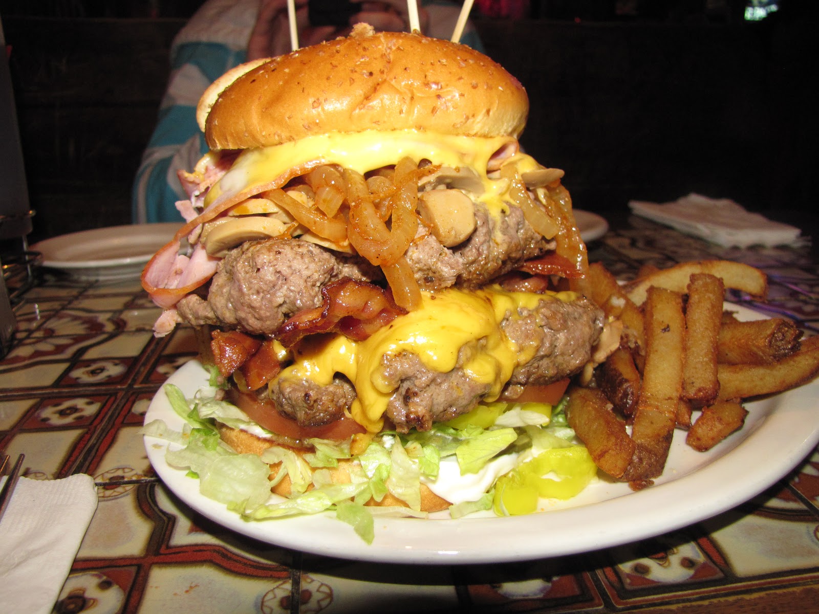 Since we’ve already done the whole Slow-Cooker Cincinnati Chili and the Cincinnati Reds’ Chili-Cheese Dog, we needed to come up with something new for Ohio. That’s when I discovered the Thurmanator Burger. We are talking not one but two 12-oz hamburger patties topped with so much stuff you can’t even imagine. Now try as I might to find the recipe online for these amazingly insane burgers, all I could find were pictures and descriptions. Having never had the pleasure of meeting the Thurmanator first hand, I’ve done my best to recreate it. Check two. Oh, and one more word about Ohio. The cover picture of a giant picnic basket, that’s a real thing. You’ll find the world’s largest basket in Newark along State Route 16. It’s home to Longaberger Company. Guess what they make? So Ohio Day is covered.