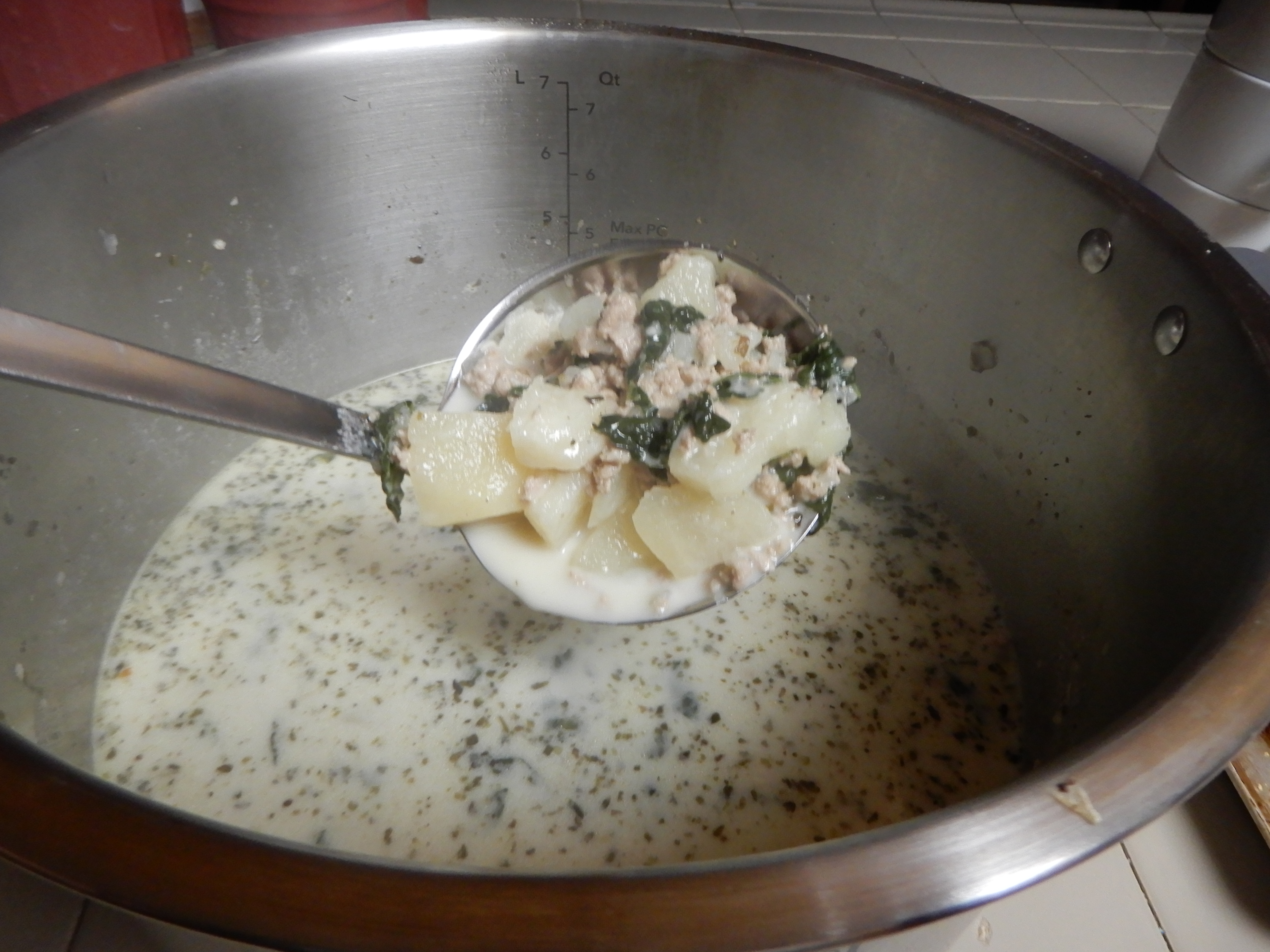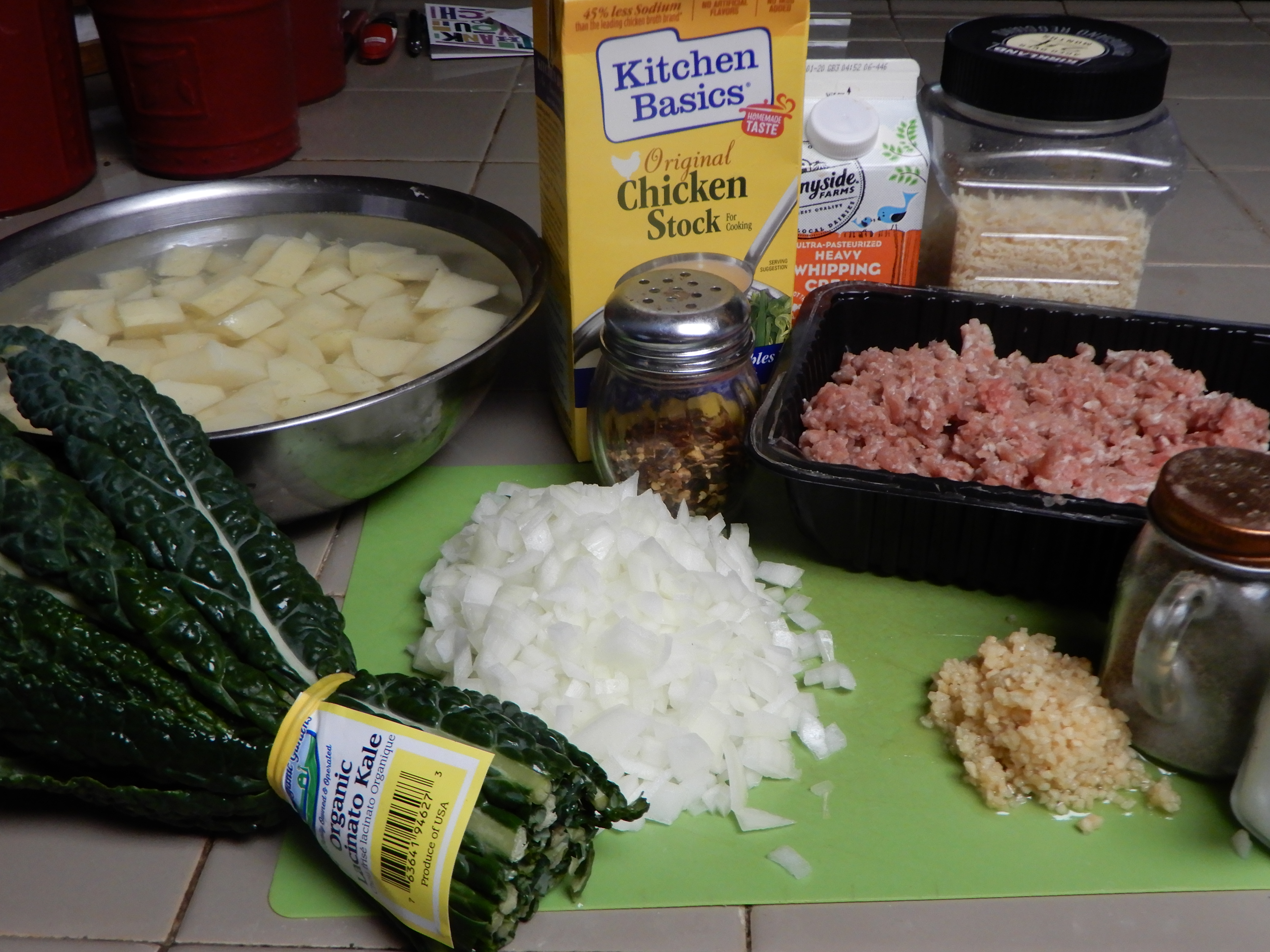 Note: This soup can be easily made with a skillet and slow-cooker. Just brown the sausage, onions and garlic in the skillet, then throw everything into the slow cooker. Cooking times remain unchanged.