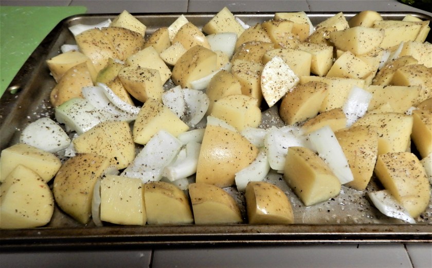 Bake in heated oven until potatoes are golden brown and tender and onions are soft, about 25 minutes.