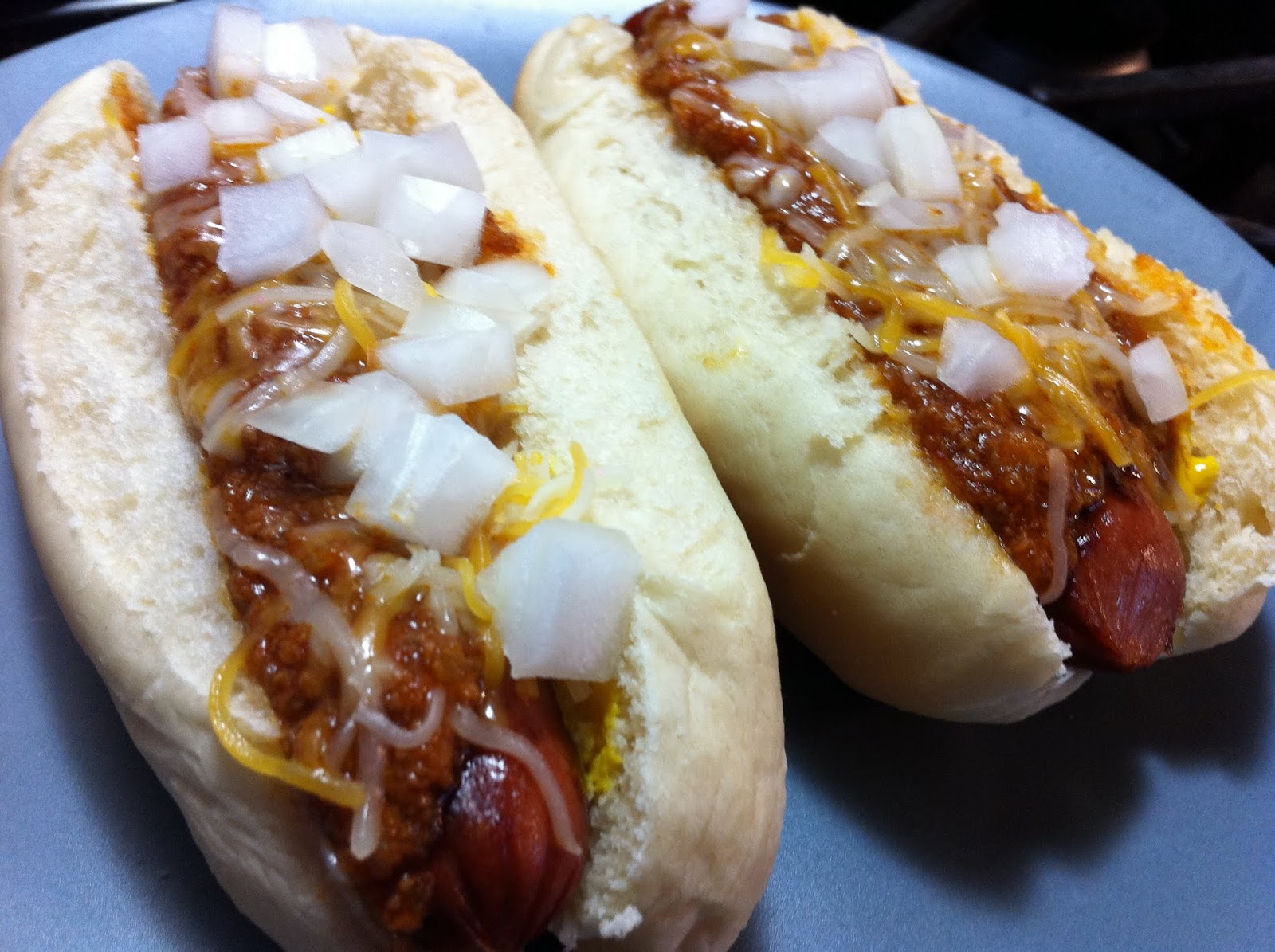 To serve, split rolls open. Place Franks snuggly into rolls. Top with Michigan Chili Sauce, shredded cheese and diced onions.