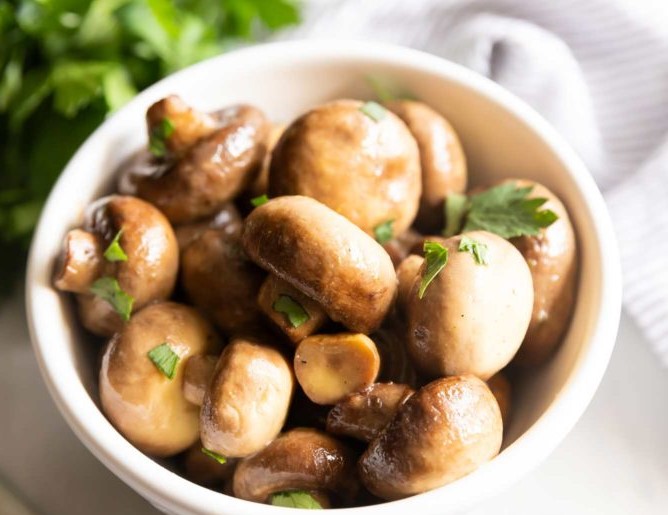 Chop parsley for garnish. Transfer mushrooms to a serving bowl. Serve garnished with fresh parsley and enjoy.