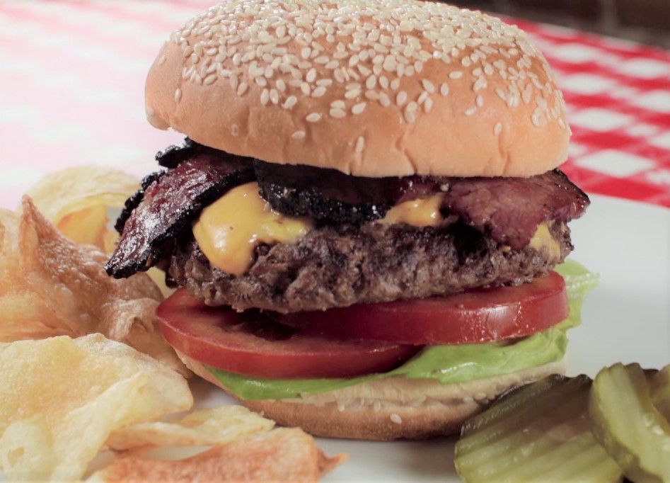 Top each burger with 2 slices cheese. Pour 1 tablespoon water into the skillet and cover with a lid, and let steam melt the cheese, about 30 seconds. When the burgers have reached the desired point of doneness and the cheese is melted, top each with a pile of crispy pastrami, then set the burgers aside.