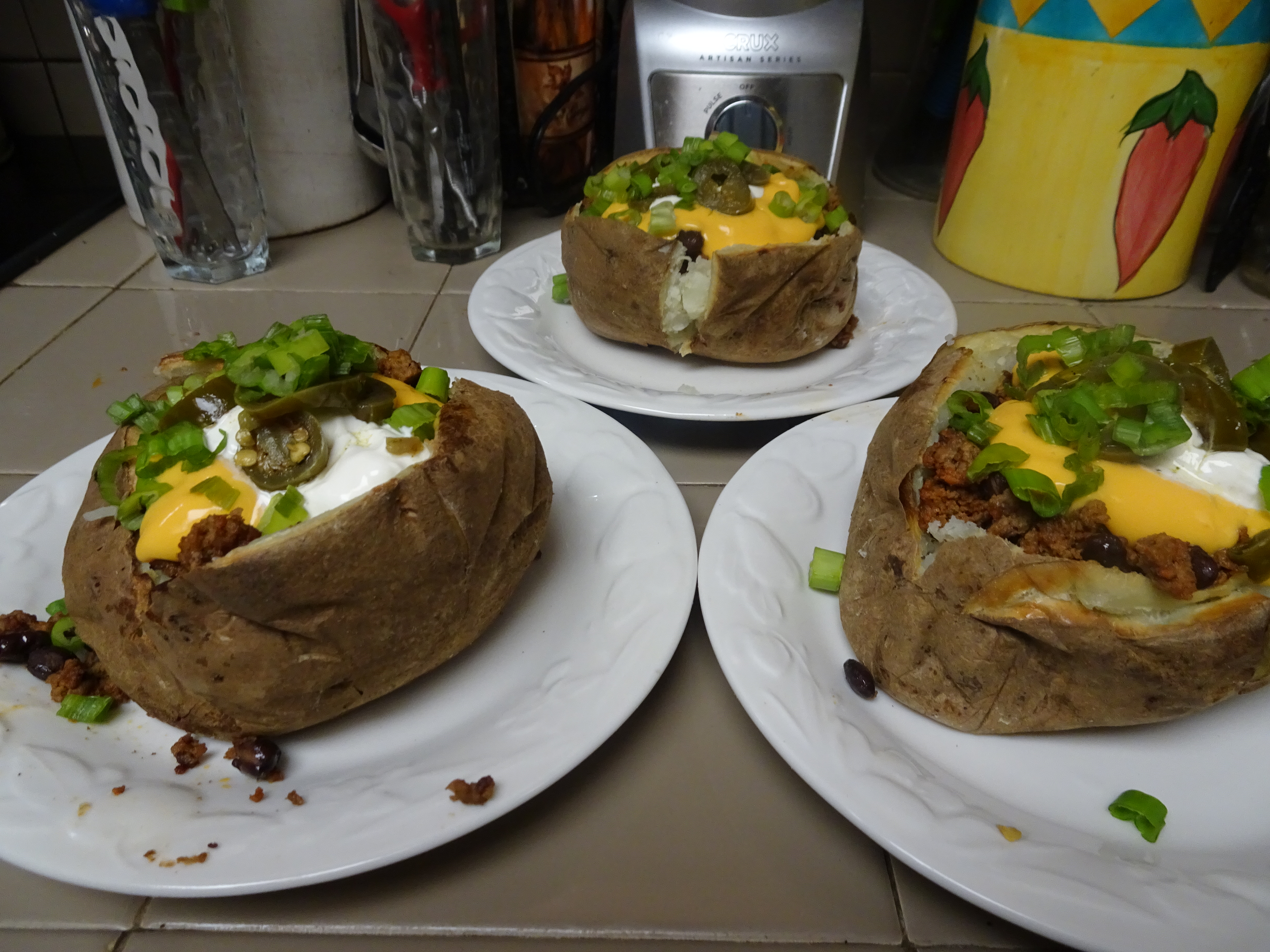 Today is also Tuesday. And we all know what that means – inspiration South of the Border. These baked potatoes were awesome – an entire meal stuffed into a single potato. Yum!