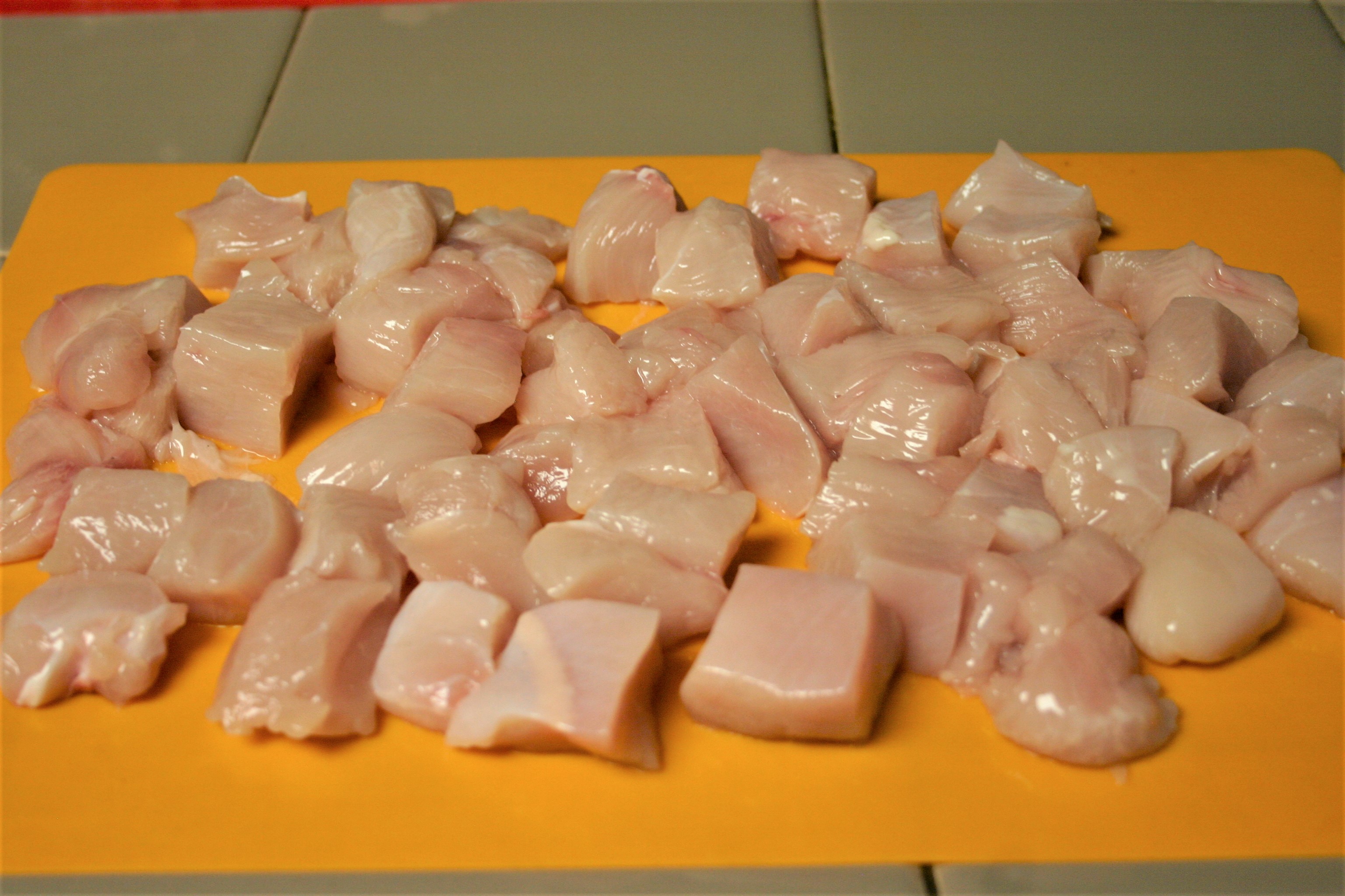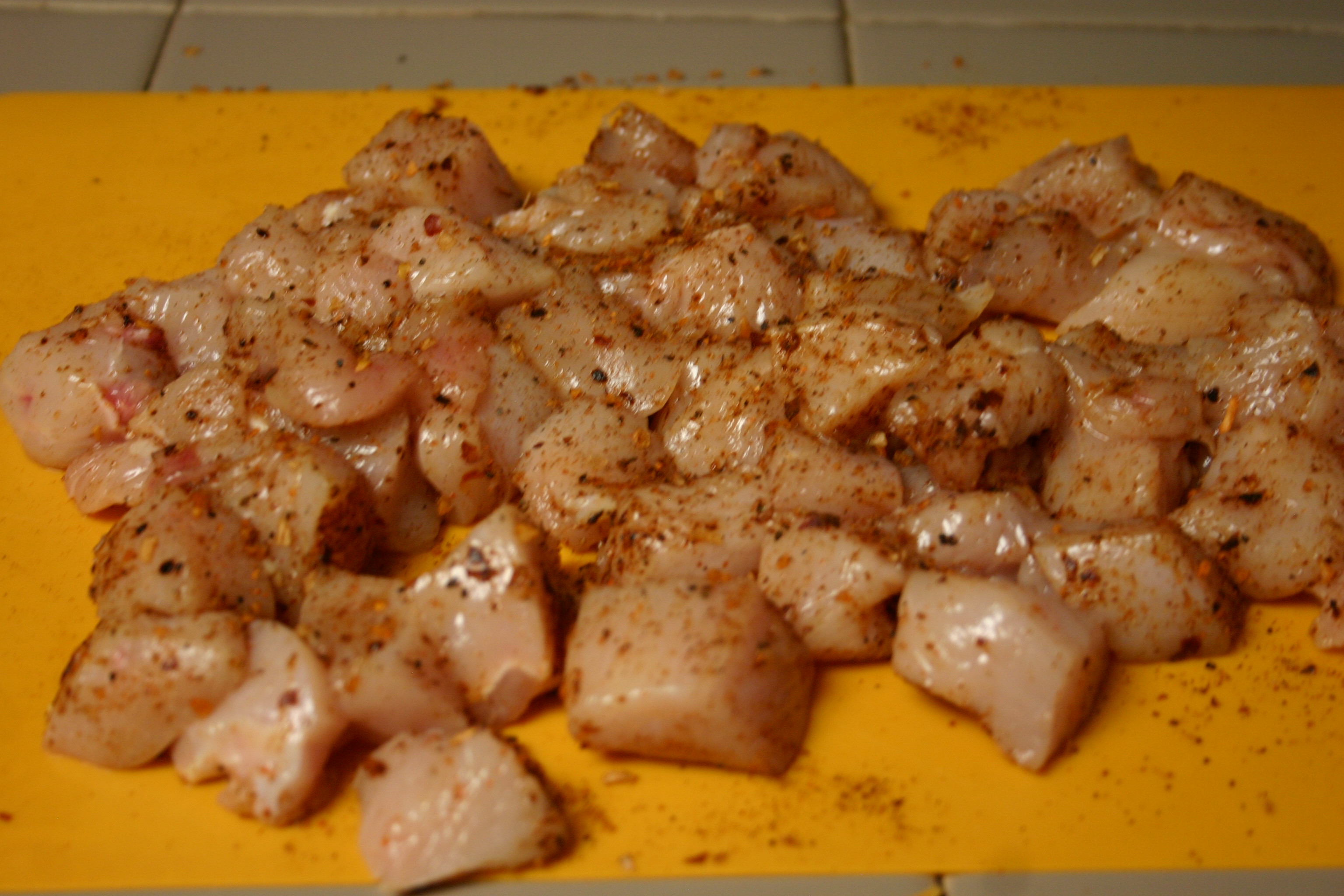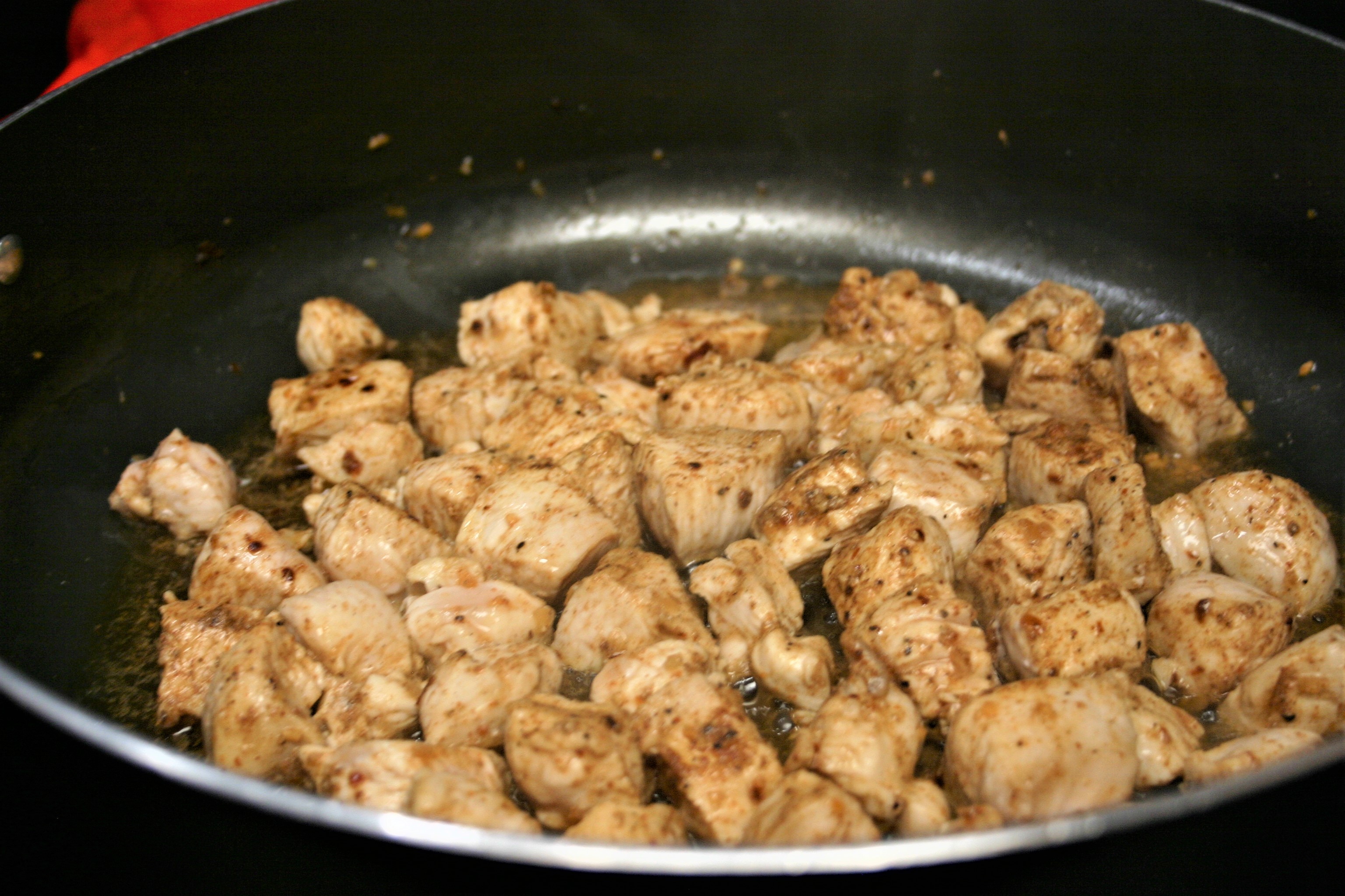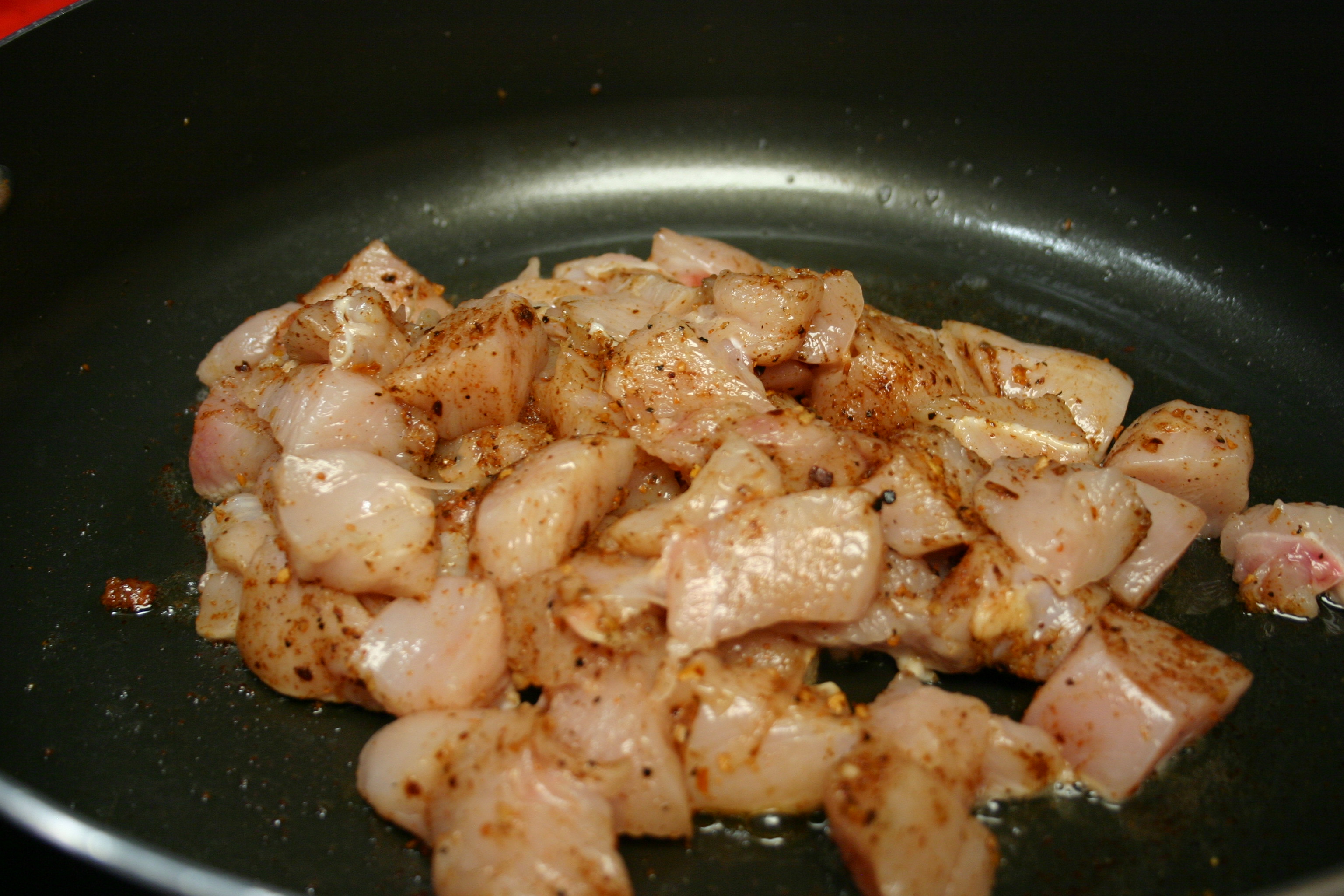 Cut chicken into cubes. Season with salt and Southwest Seasoning Blend to taste. Toss to coat, season again if necessary. Add cubed chicken to the skillet, cook over medium heat until cooked through, stirring often for even cooking, about 10 minutes. Remove skillet from heat, set aside.