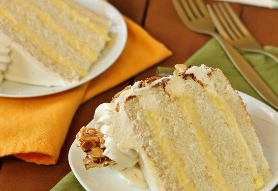 Note: This cake is best served the day it is assembled, but will taste fine for several days although almonds will become sticky over time.