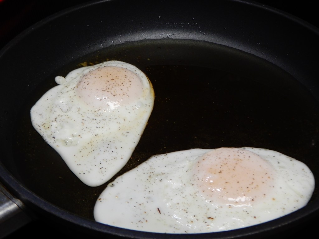 In the skillet used for the sausage, add a little oil or bacon drippings. Fry eggs to desired doneness. Season with salt and pepper.