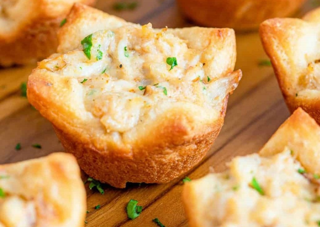 Fill the cups with the crab mixture evenly. Bake for 11 minutes or until golden brown.
