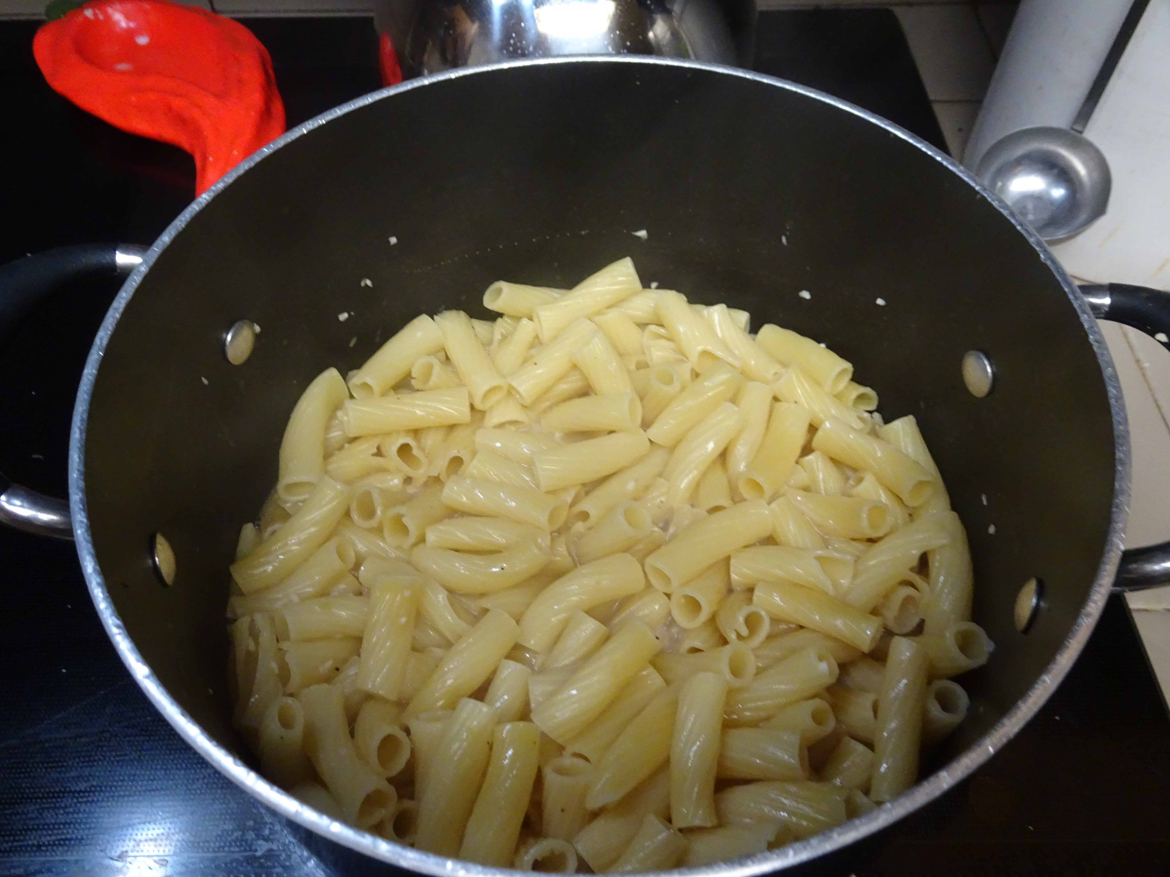 Add chicken stock, juice from the lemon, rigatoni, salt and pepper. Heat to boiling. Simmer uncovered 14 to 16 minutes, stirring occasionally, until pasta is al dente and most of liquid is absorbed.