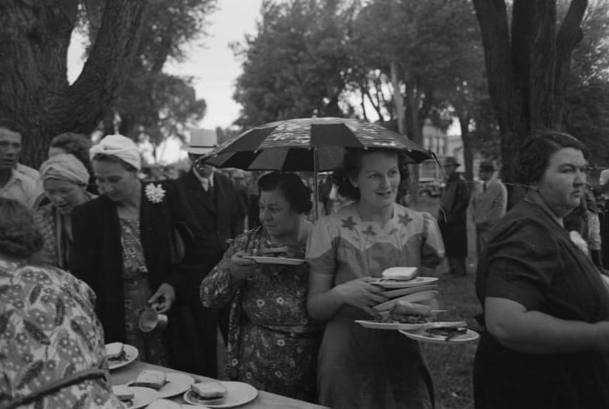 The outlines first proposed to observe Labor Day called for a street parade to exhibit “the strength and esprit de corps of the trade and labor organizations” of the community, followed by a festival for the recreation and amusement of the workers and their families. Unlike the Labor Day celebrations of today, Labor Day of the past was a community event. Cooks volunteers to grill up a spread for the whole town, and people stood in line to participate in a community meal. Such celebrations gave people a sense of belonging and pride.
