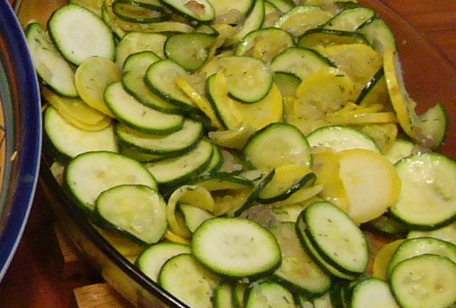 Sauté squash until warm and crisp-tender, about 10 minutes. Press garlic over squash and sauté until fragrant, about 30 seconds. Remove from heat.