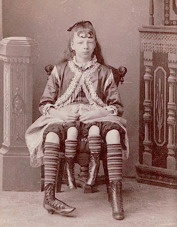 Josephine Myrtle Corbin was born in Tennessee in 1868. Despite her deformity, Josephine married and had children. She was born with two pelvises side by side, and as a result she had four legs. Ironically, Josephine died as a result of a leg infection.