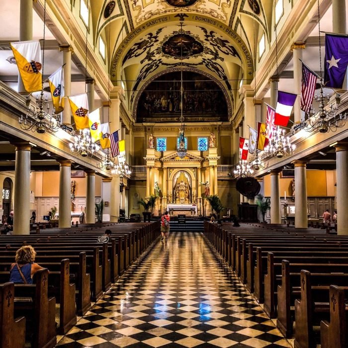 However; the honor of the oldest Catholic Church in Louisiana goes to Saint Louis Cathedral in New Orleans. Since 1718, three Roman Catholic Churches have stood on this site. The first was a humble wooden building, which was torn down in favor of a larger brick and timber church. The second church was completed in 1727. Unfortunately, it was destroyed in the Great New Orleans Fire of 1788. It was almost a year before the ruins could be cleared for the new cathedral. Construction began in 1789, and was completed in 1794. In 1849 the diocese decided to move ahead with plans to renovate the church. As construction continued, it was determined that the walls of the structure needed to be demolished. Today very little of the beautiful Spanish Colonial structure has managed to survive. However; the bell of a tower built in 1819 is still in use today and rings out on the hour. While the Cathedral is open to visitors daily for self-guided tours, mass is also held daily. Those visiting are encouraged to show reserve reverence and respect as this is a house of worship.