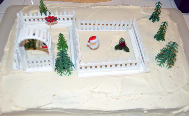 Every year for Christmas, I bake a half-sheet cake for Christmas Day. That’s when the extended family all gathers at the farm, and we need a bigger cake. I must confess, while I hold my own at baking, I’m not necessarily all that talented in the decorating category. At least not without some cheats.