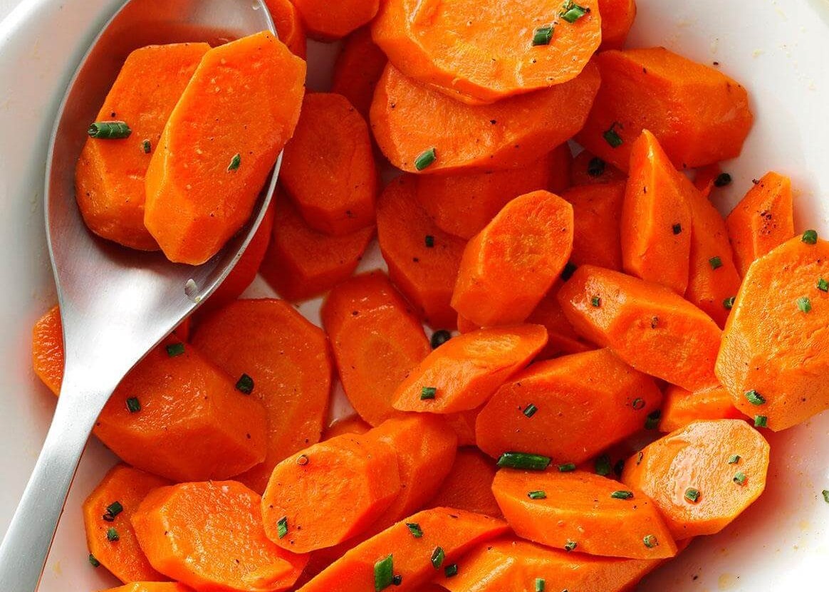 Transfer to a serving bowl. Snip chives, sprinkle over carrots and serve.