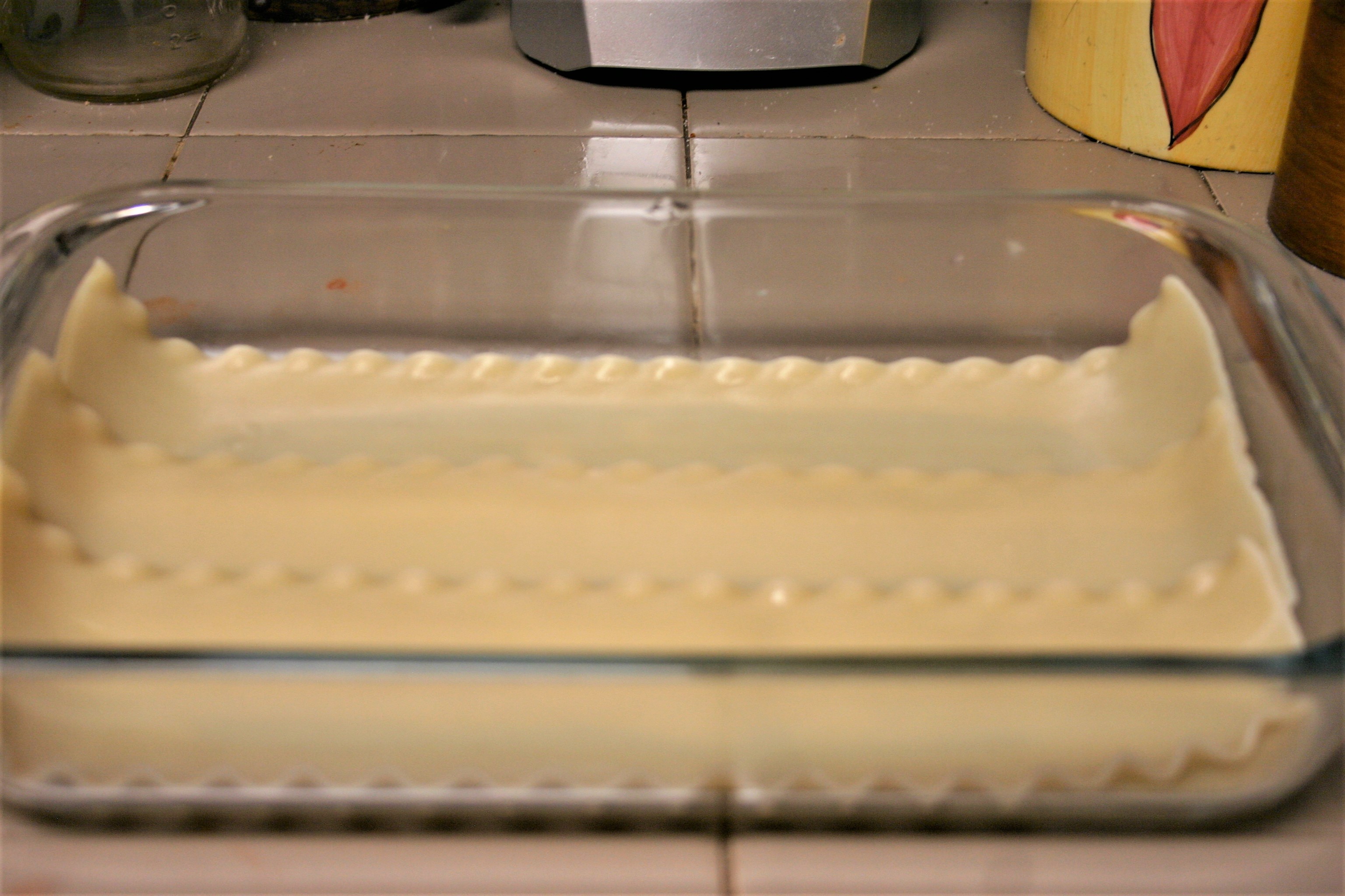Cook lasagna noodles to desired doneness as directed on package. Drain and rinse under cold water to stop the cooking process. Lay noodles out on a baking sheet to keep flat.