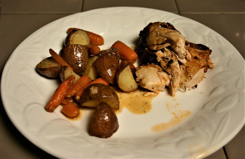 When I put together our meal plans, I look at what we have, what is on sale and what is in season. From a Costco Run, we had a couple of game hens left in the freezer. Those birds became the starting point to build a delicious meal for my family’s Sunday supper. The beauty of this particular meal is that it all cooked up in a single roasting pan. Tasty and easy – two of my favorite things.