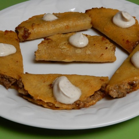 Remove from skillet, drain on paper towels to soak up any grease. Arrange the bite-size tacos on serving platter and keep warm until ready to serve.